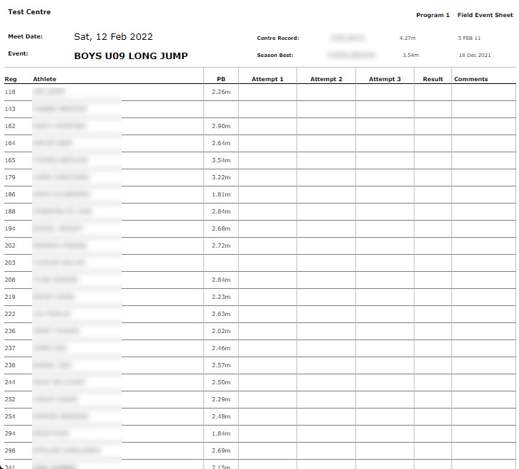 An integral part of running Little Athletics clubs, small or large, is the recording of results. Recording results in Club Manager is a cinch when you use the event sheets in Club Manager. You print them out for the selected week, fill them in and then key the results into Club Manager.